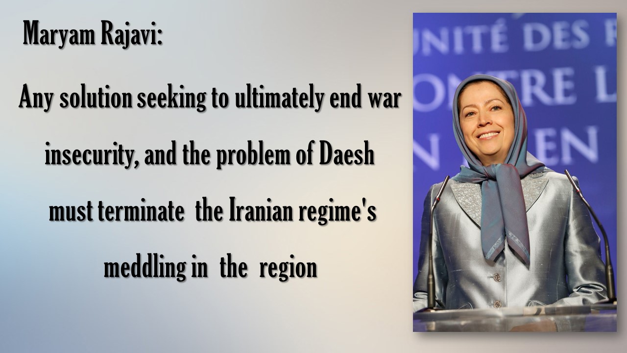 As for the present crisis in the region, any solution seeking to end war and insecurity, and address the problem of Daesh (ISIS/ISIL) in particular, must consider terminating the regime's meddling in the region and especially in Syria. Nothing is more catastrophic than cooperating with the Iranian regime to fight Daesh. This would strengthen the Iranian regime and its terrorism, and would nourish Daesh, politically and socially.
